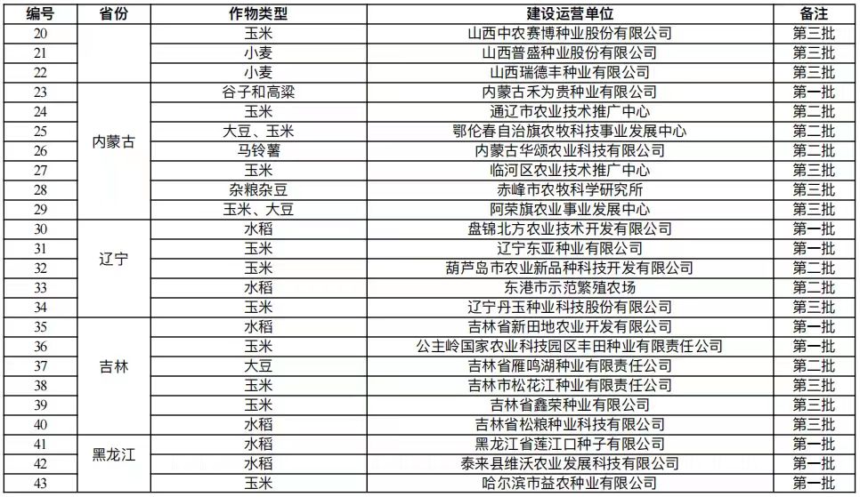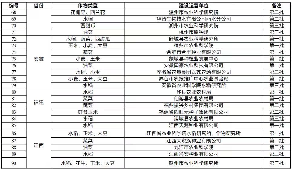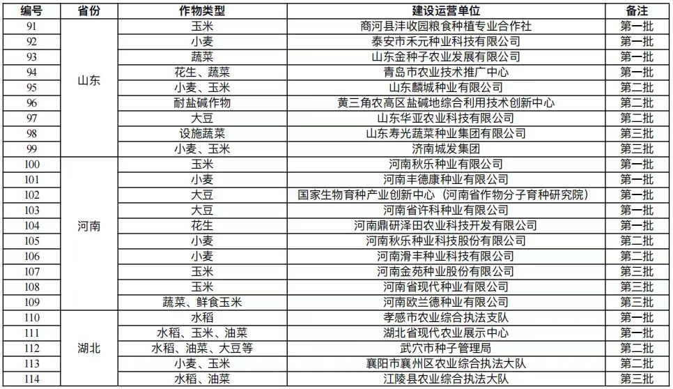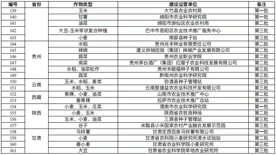 國(guó)家農(nóng)作物品種展示評(píng)價(jià)基地名單